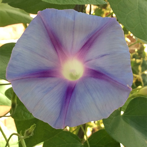 Want de Ipomea ontvouwt elke dag een bloem uit één van de vele knoppen in haar bladoksels.