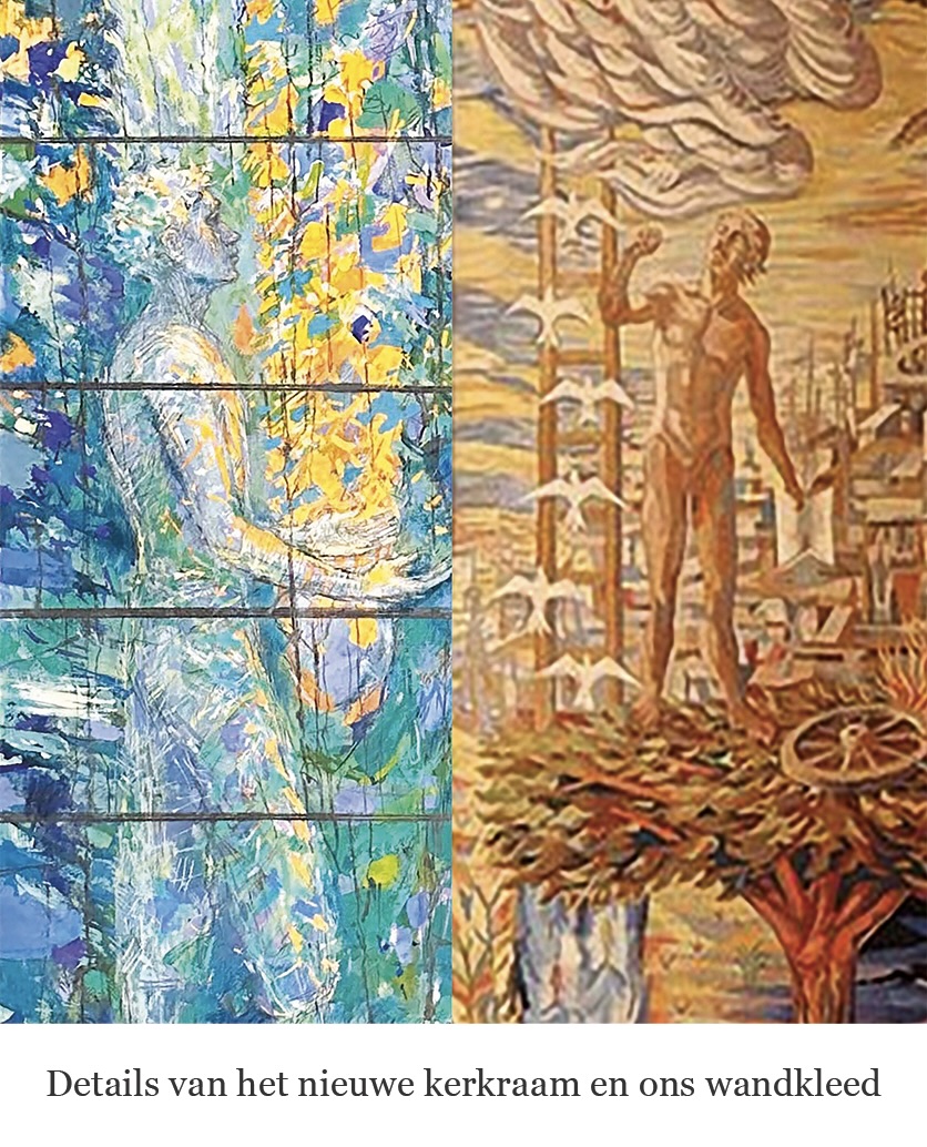 Deze Veertigdagentijd zullen we in de Nederlandse Kerk in Londen op zoek gaan naar beelden, liederen en verhalen die kunnen dienen als een tegenover in deze verharde wereld, die in ons de zachtheid opwekken die momenteel zo nodig is. Deze zomer zal daarvan een heel sprekend beeld verschijnen in onze kerk in het nieuwe kerkraam van Thomas Denny. Het beeld van de ontvangende mens, die met open handen vertrouwt op zachte krachten. Staand, recht tegenover de afwerende, overmoedige mens die op ons wandkleed staat afgebeeld. Ik verheug me nu al op zijn komst en tot dan zal ik het mantra blijven zingen: Wek mijn zachtheid weer…